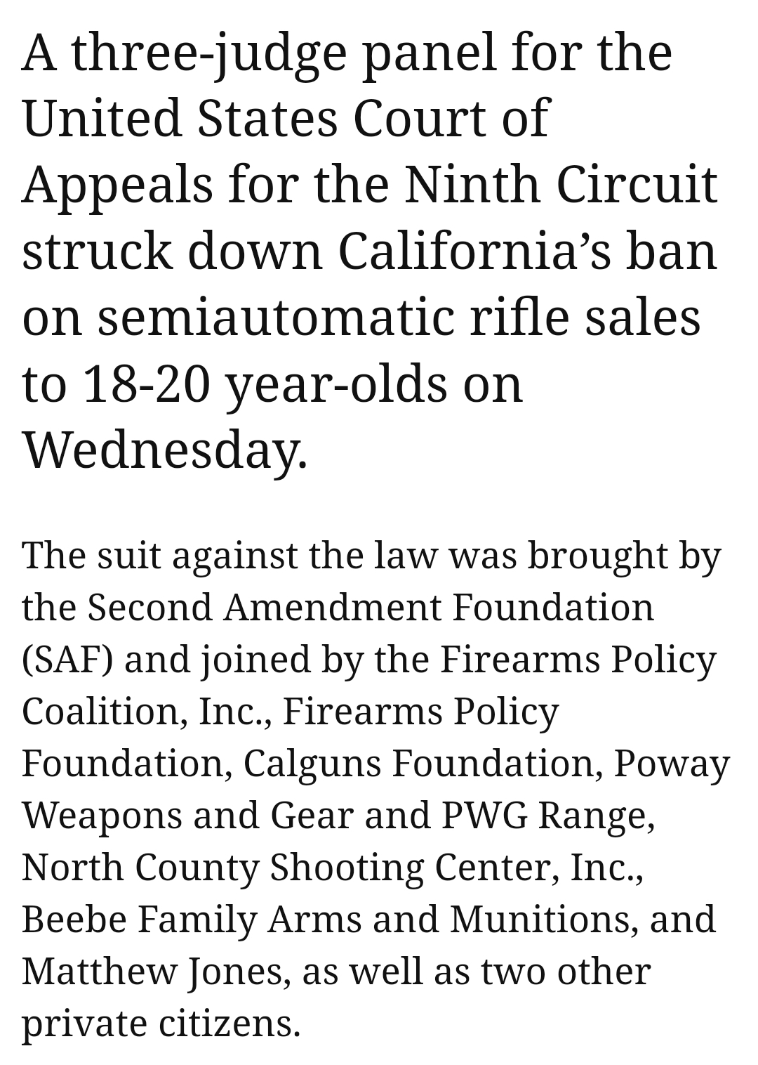 YES! This is fantastic! American liberty, protected in the Constitution, is being acknowledged and reaffirmed by the courts. And in California, of all places. The article goes on to say…