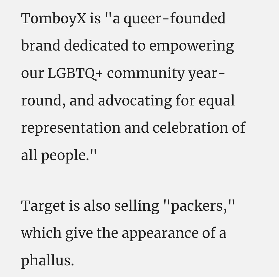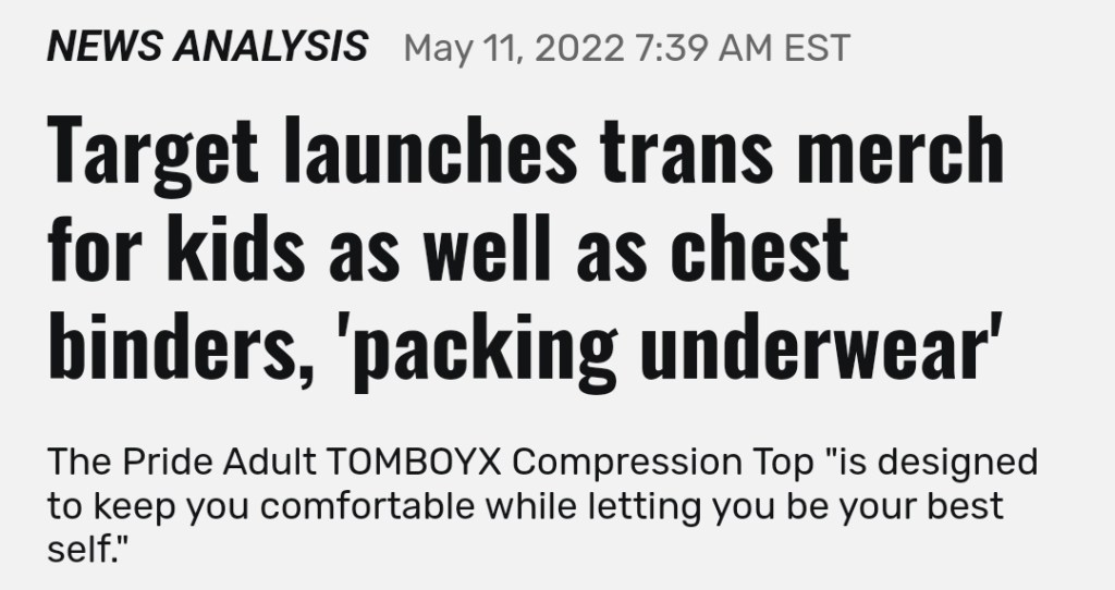 Yeah, a female who wants to appear male can go to Target and buy a “packer” to make it look like she has a penis. I know, right? I mean, this is absolutely insane what’s going on here. The article goes on, however, to elaborate on some of the dangers of these products.