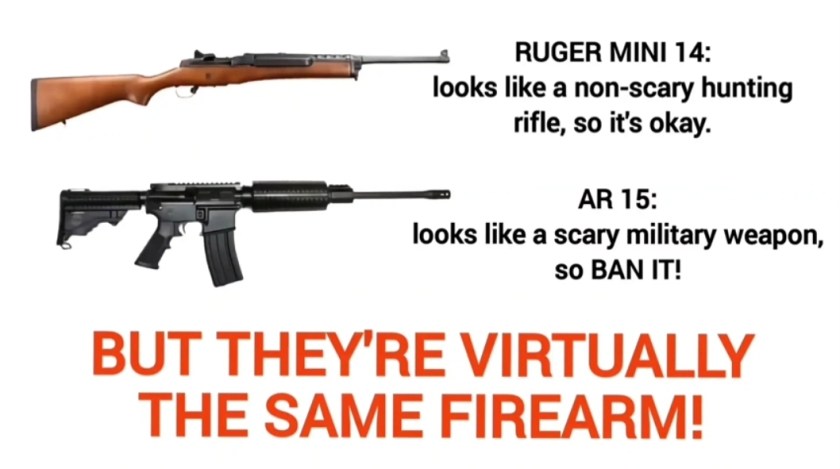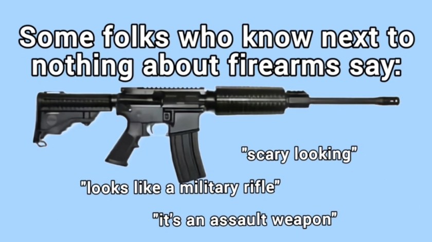 In fact, for all their attempts to instill fear in people regarding these “scary-looking” weapons, the AR-15 is rather tame when it comes to power. It’s basically the same as a regular .22 rifle with a few modifications to make it easier to grip and handle. The fact that it’s similar in appearance to the military M-16 rifle, giving it a more intimidating look, is one of the reasons it’s so effective as a personal defense firearm. A would-be attacker will think twice about trying to go up against a citizen carrying the AR-15 precisely because it’s “so darn scary-looking.”