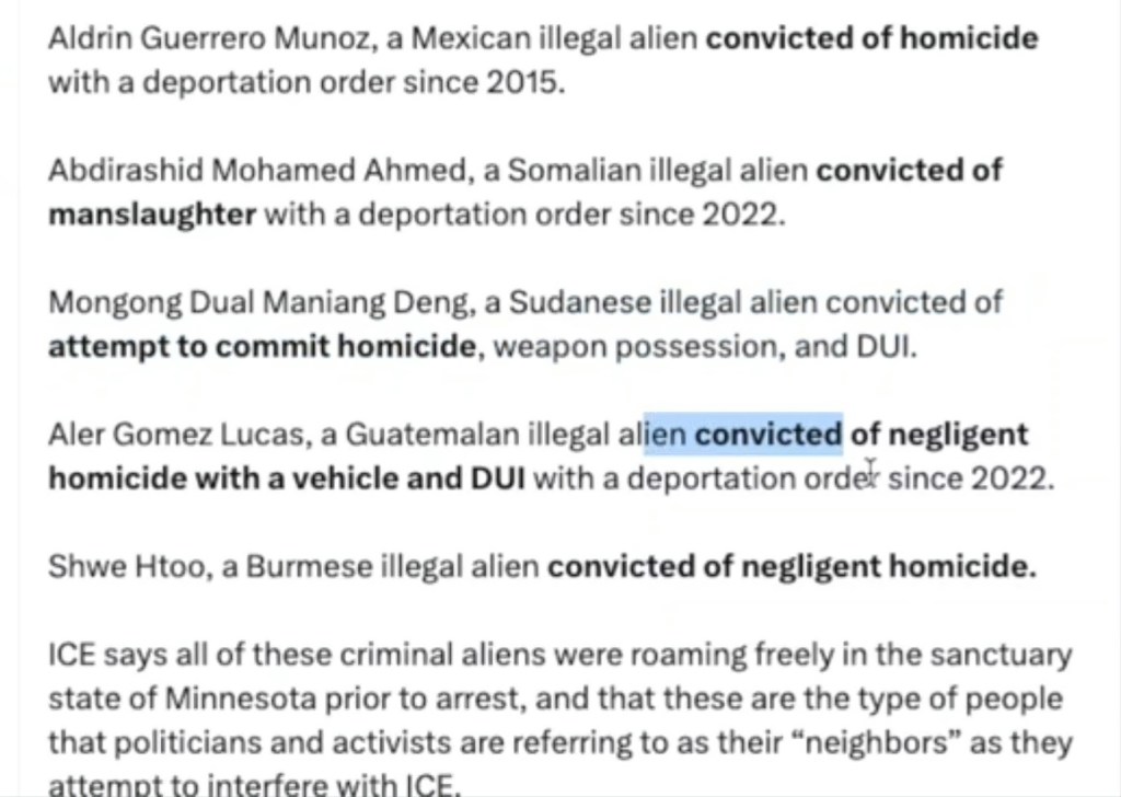 Here’s a look at just who some of the scumbags are that ICE is seeking to arrest – and this is just in Minnesota: