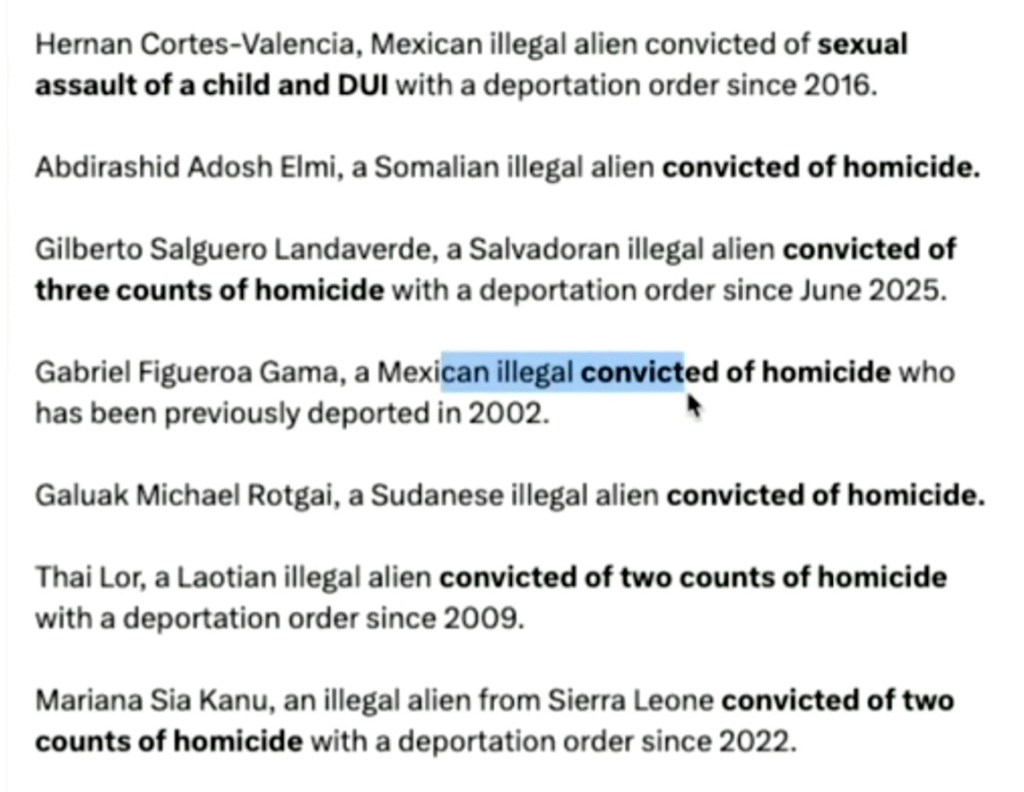 So when folks like Renee Good and countless others attempt to interfere with the operations of ICE, those people I just listed are the molesters, rapists, and murderers the disruptors are defending. And it seems to be getting worse.