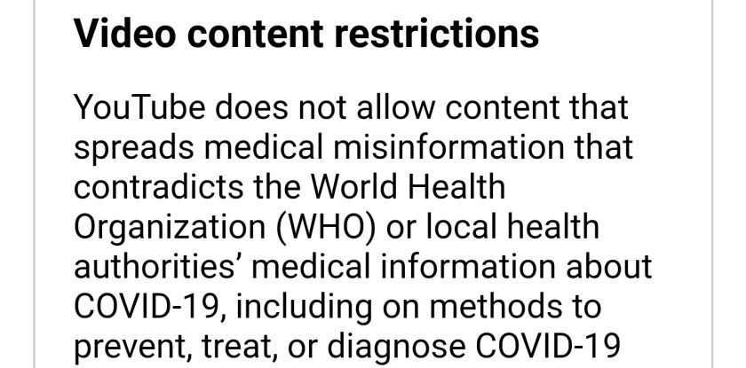 They call it misinformation, even though it’s from reputable doctors with long careers of treating illnesses. The key phrase above is “that contradicts the WHO.” That’s the real kicker. These doctors’ opinions and expertise are quite valid, but just because it goes against the narrative of the WHO, they’re being censored so that you can’t listen and formulate your own informed opinion.