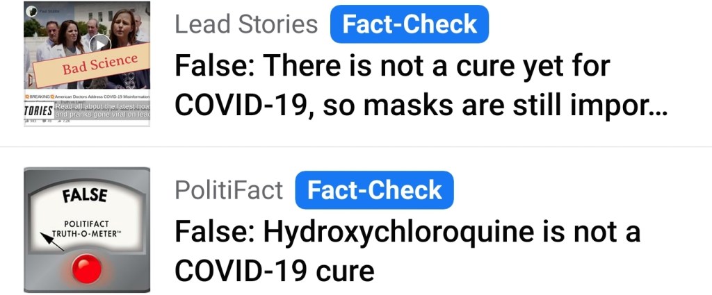 Where’s the accountability in that? Who checks the validity of the fact-checkers? Why should their rehashing of the mainstream narrative be deemed more plausible than the findings of so many actual doctors with a more positive outlook? Why believe anyone who is attempting to silence the opposition? Why not debate it, compare and contrast studies, and look for real answers? These are the questions we should all be asking.